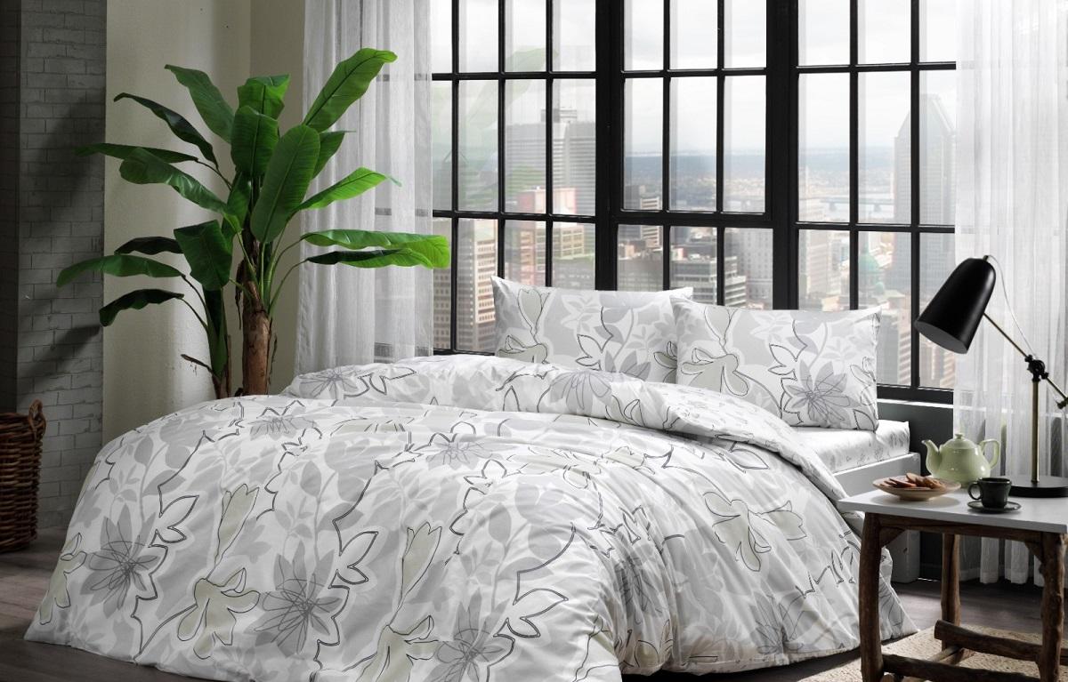 Постельное белье ранфорс Tac Jamie серое 1,5-спальное