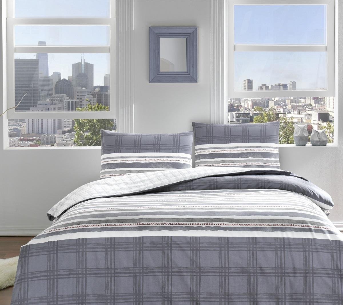 Постельное белье ранфорс Tac Sidra синее евро