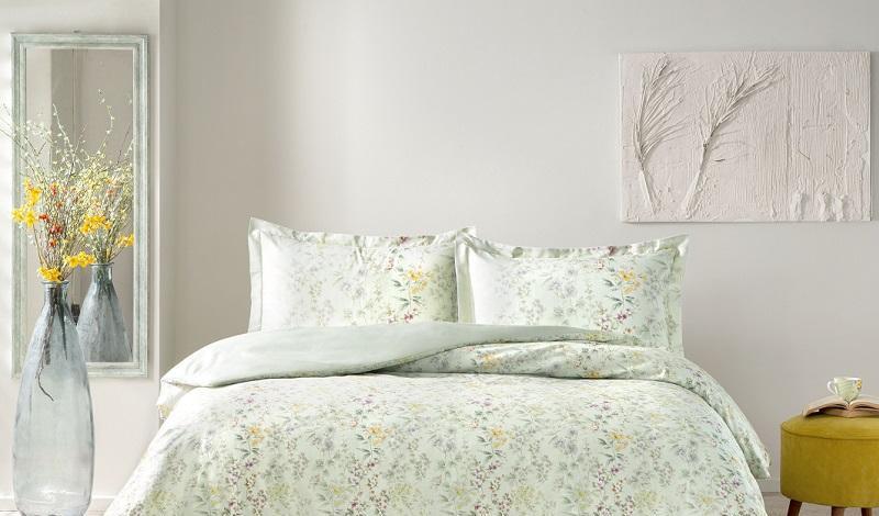 Постельное белье сатин Tac Cassie зеленое 1,5-спальное