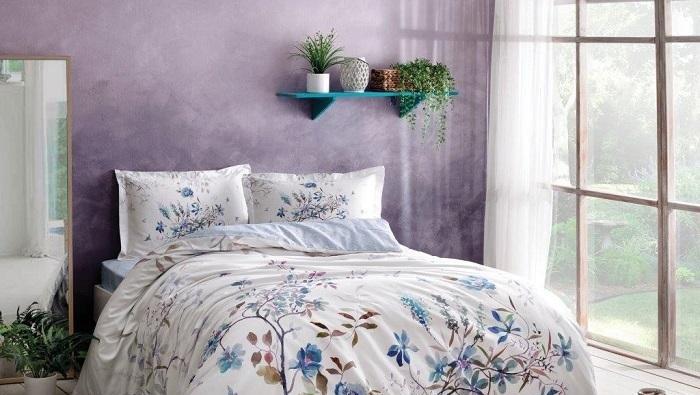 Постельное белье сатин Tac Lindy mavi 1,5-спальное